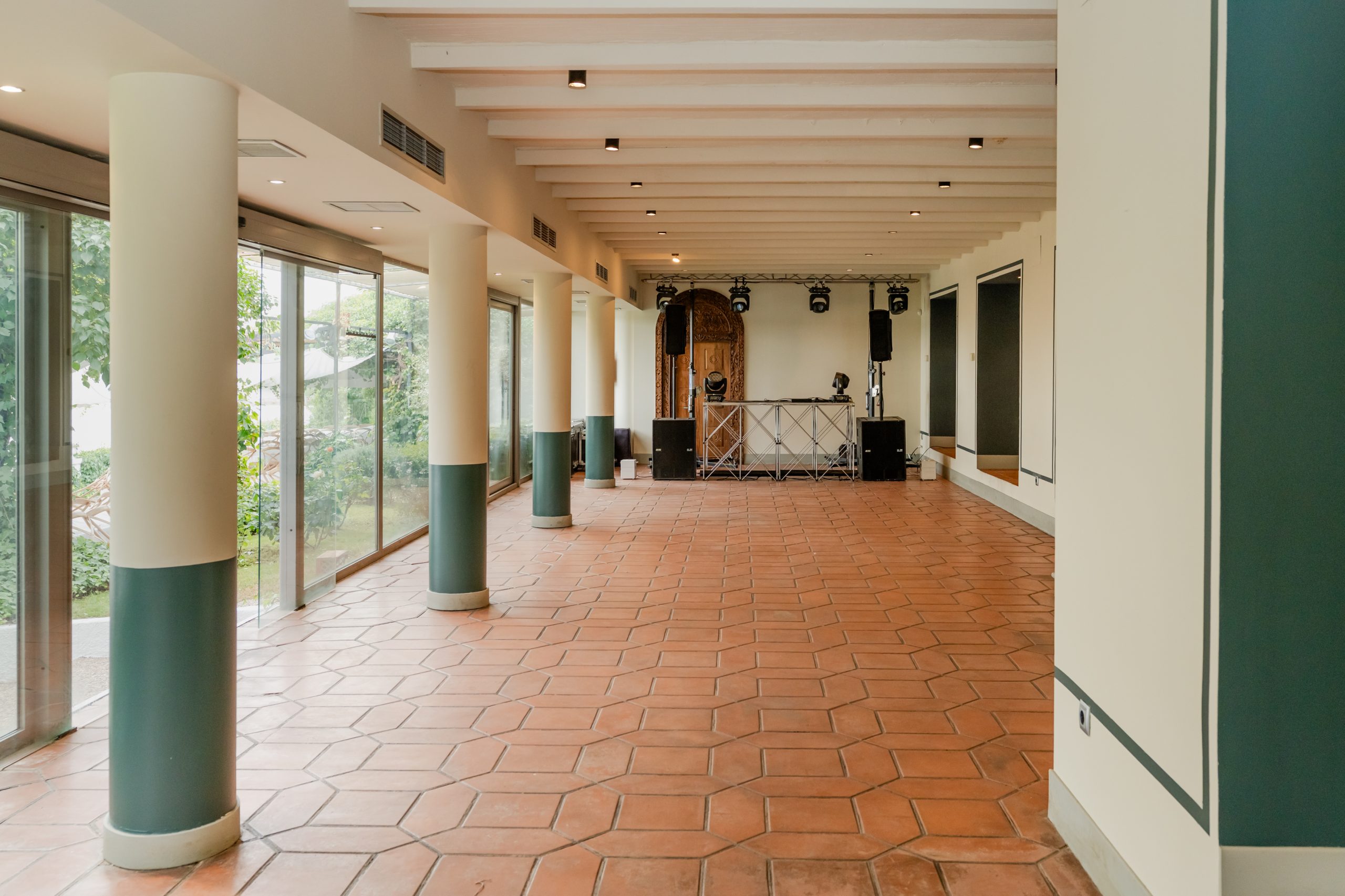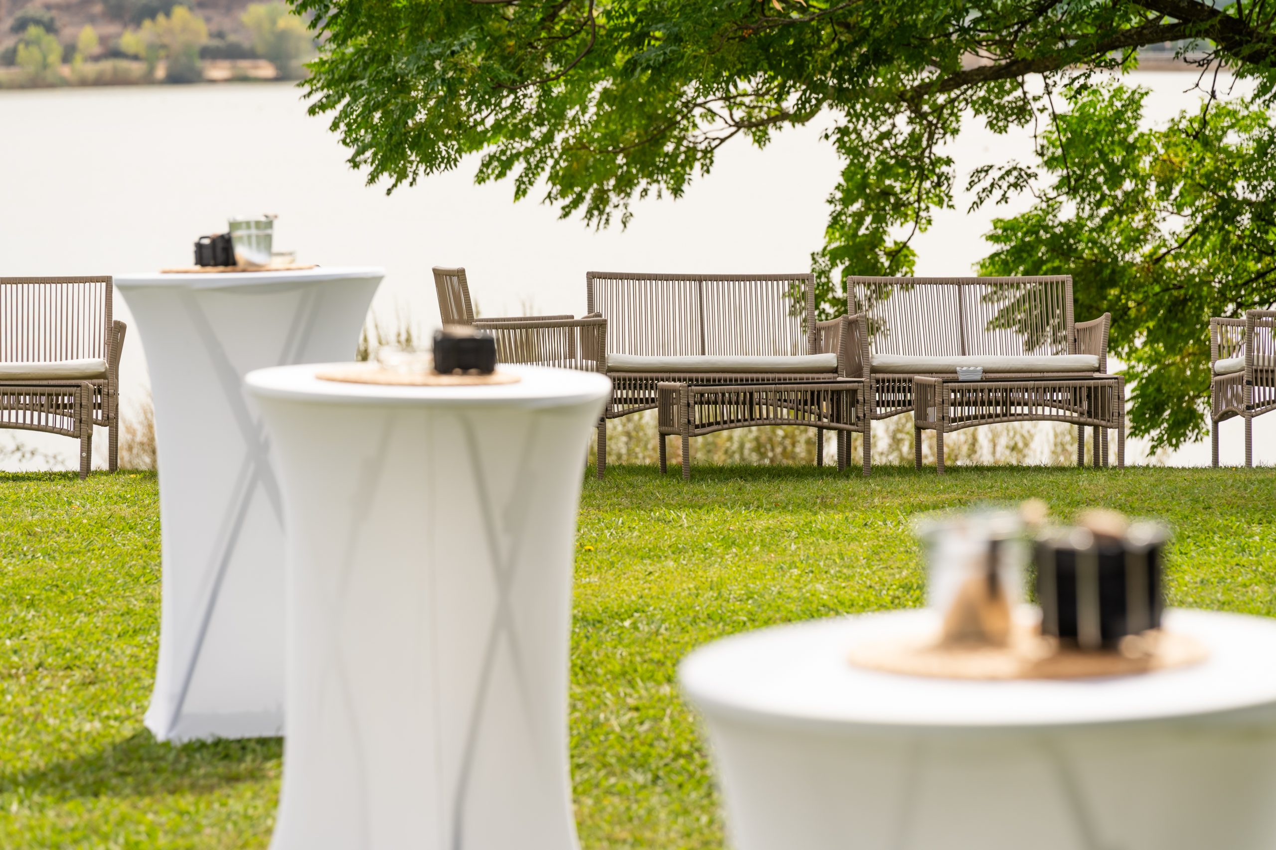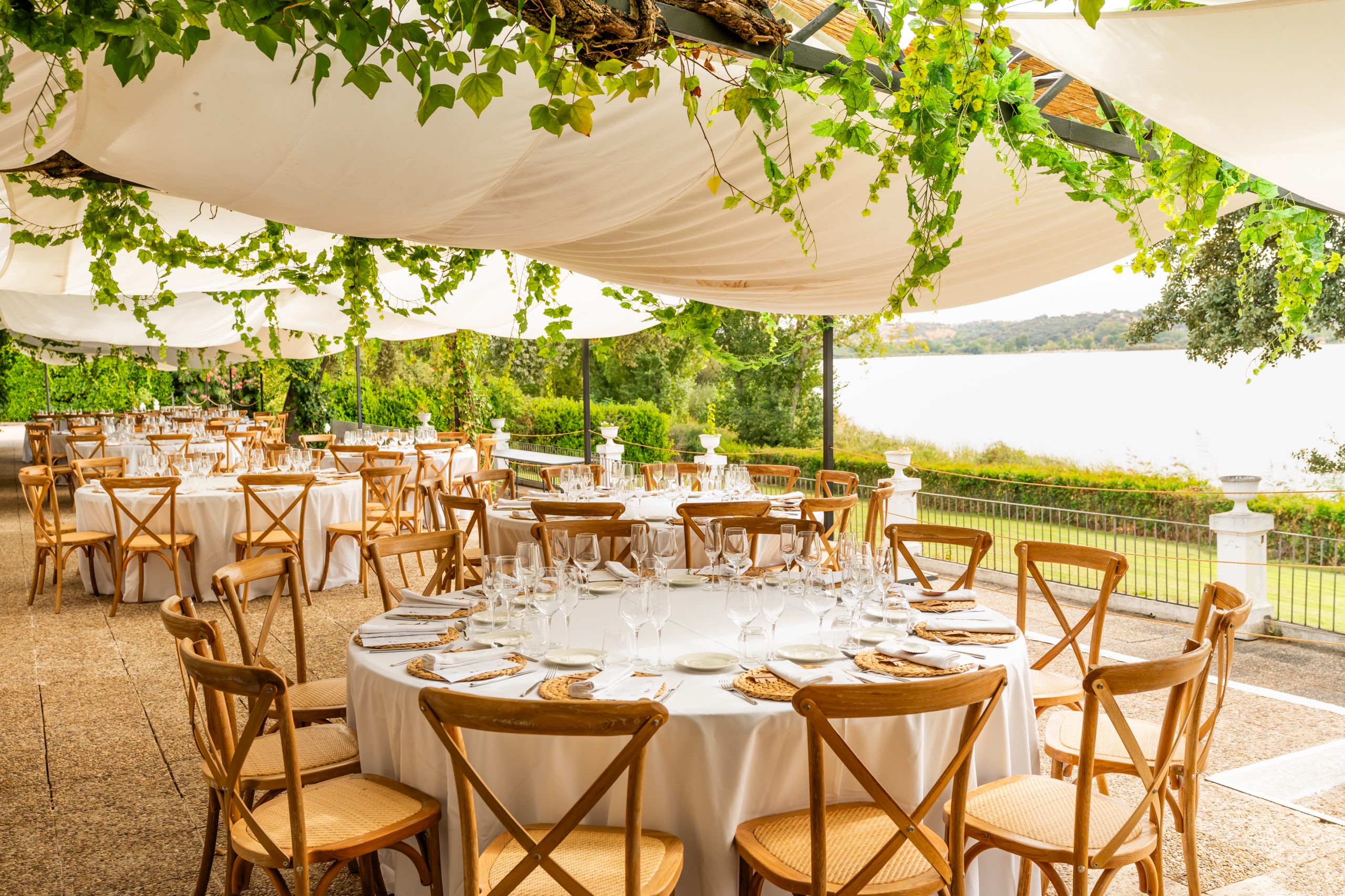 Diferentes espacios que se adaptan a cada momento de una celebración para que el evento sea sorprendente, dinámico y memorable. Espacio íntimos, románticos y muy luminosos, con vistas a una terraza de escándalo ubicada en un majestuosos jardín a las orillas del embalse